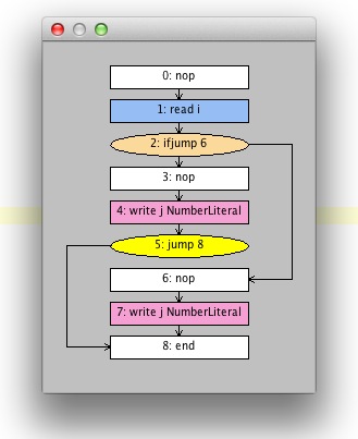 We start with the obligatory nop to make the node as visited. Then we run the DFB for the condition, because that is evaluated in any case. Then it becomes interesting: depending on whether the condition is true or false, we either run the thenPart} or we jump to where the {{else if parts begin. Here is the code so far: