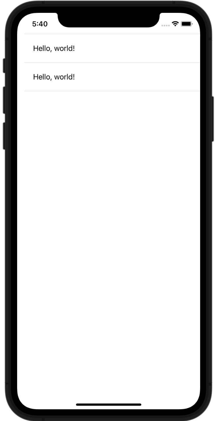 Textcontrol in aList:struct ConferenceList: View { var body: some View { List { Text("Hello, world!") .padding() Text("Hello, world!") .padding() } } }The preview will display this change: