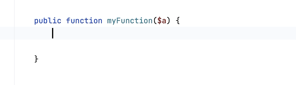 Expand method bodies in completion for overrides | By default, when you want to override a method from the parent class or interface and select this method from the list of completion suggestions, PhpStorm automatically adds parameters, generates a Clear this checkbox to suppress automatic generation of method bodies for overrides during completion. | |