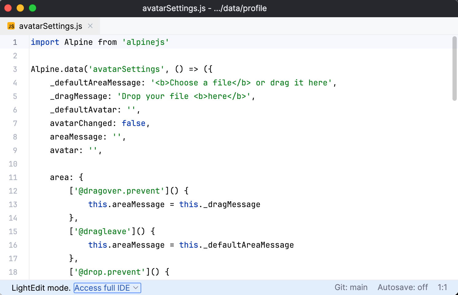 Even though the LightEdit mode does not support all the PhpStorm editor coding assistance, you can still use basic editing features and menu options.