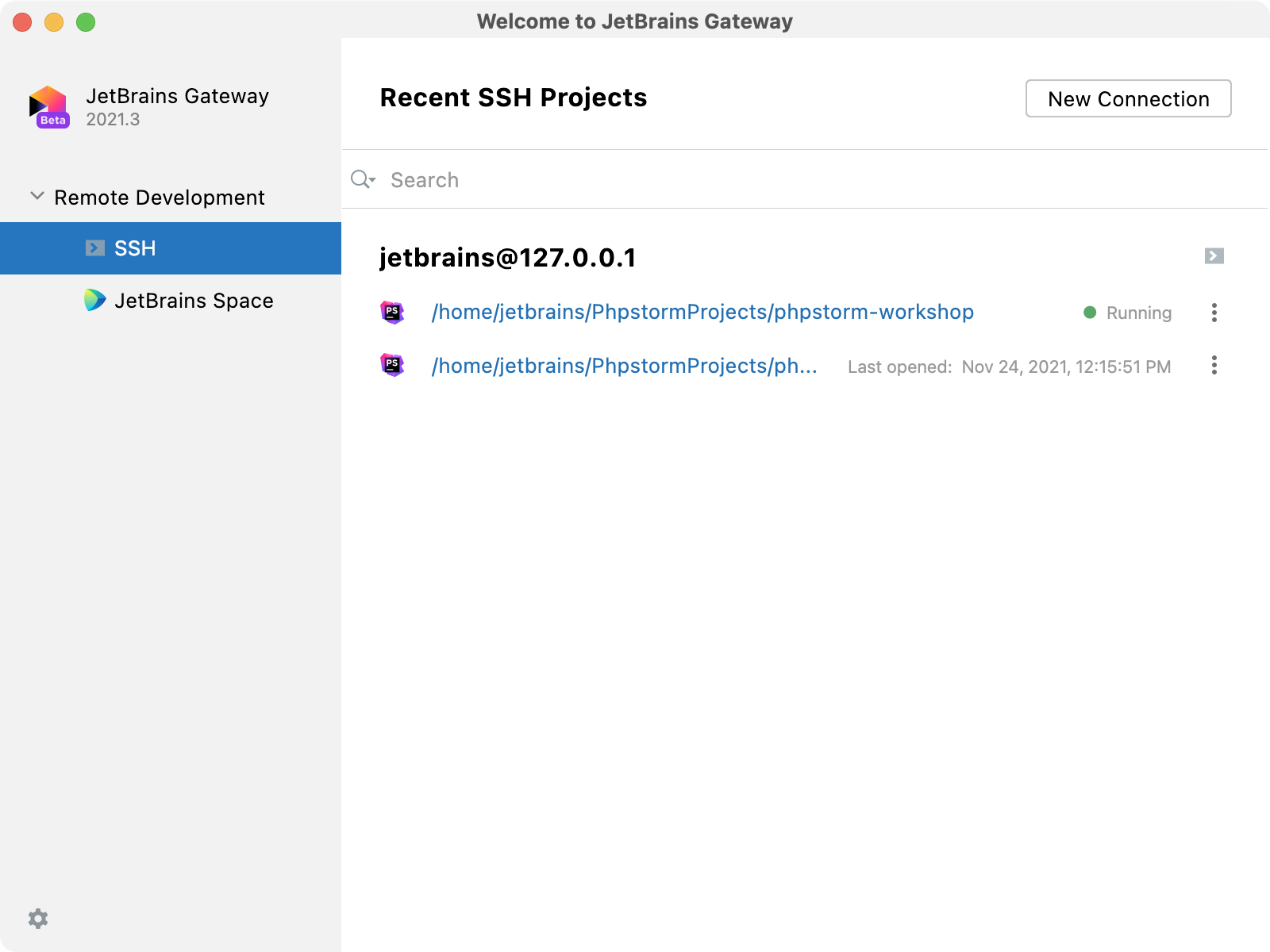 Gitpod is available in JetBrains Gateway as a plugin that you can use to connect to the existing Gitpod workspaces or create a new one and work with it in PhpStorm.