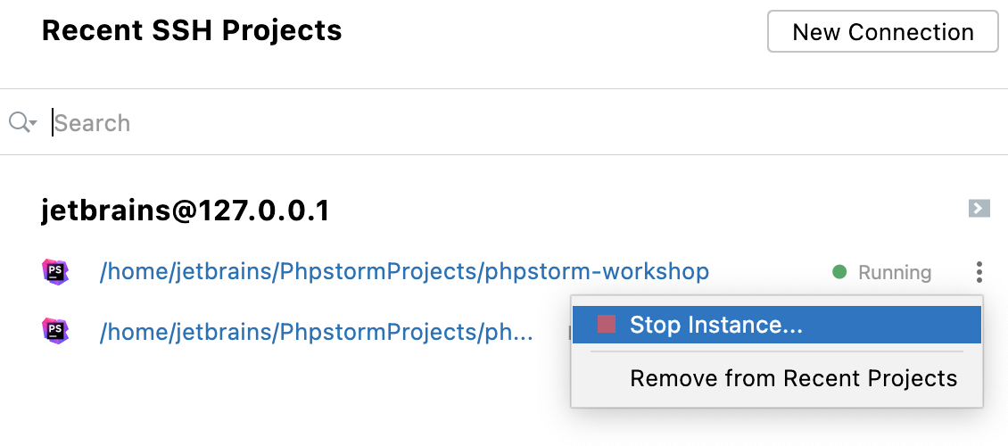 next to the project and select Stop IDE Backend to stop the remote session for that project.