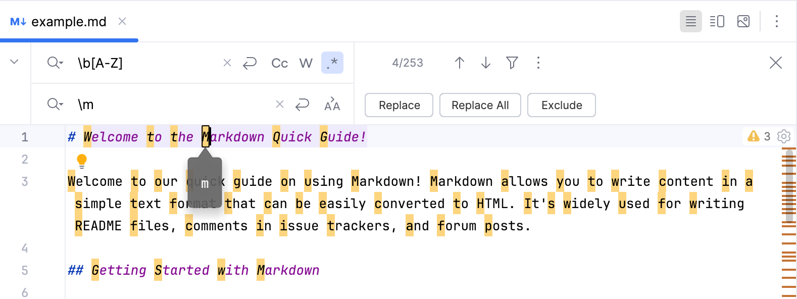 to enable regular expressions. If you want to check the syntax of regular expressions, hover over