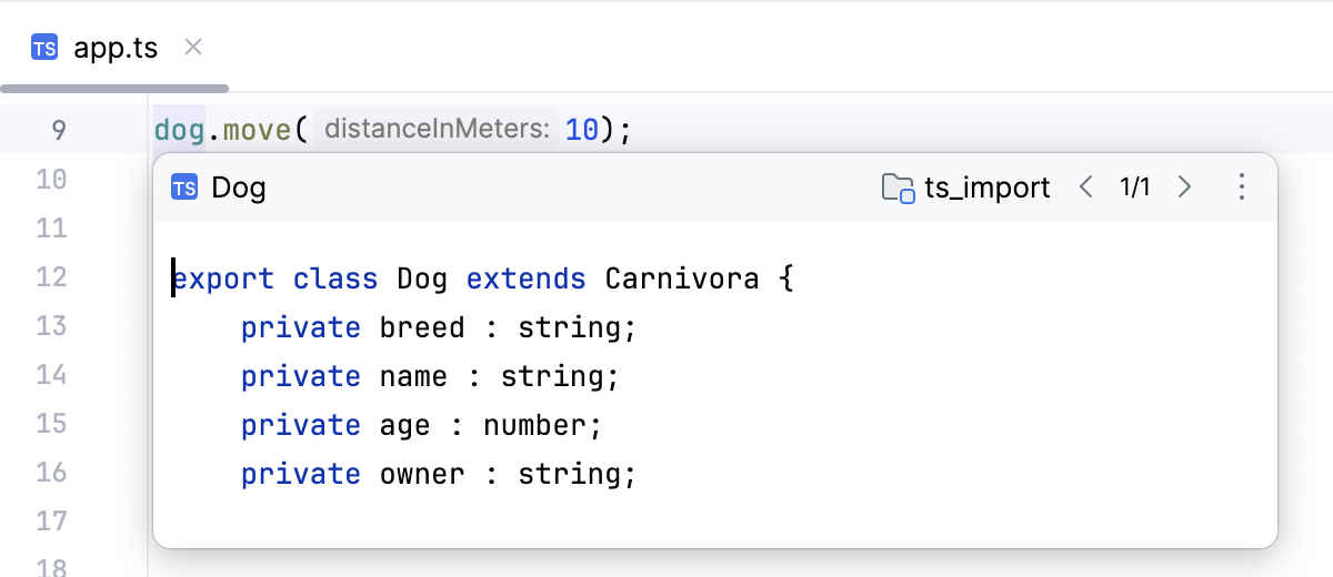 You can quickly navigate through your TypeScript project in the JetBrains Rider editor using different actions and popups.