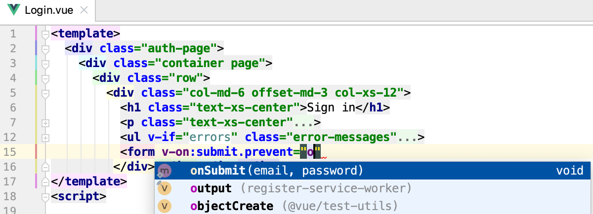 Vue.js is a framework for developing user interfaces and advanced single-page applications. JetBrains Rider provides support for the Vue.js building blocks of HTML, CSS, and JavaScript with Vue.js-aware code completion for components, including components defined in separate files, attributes, properties, methods, slot names, and more.