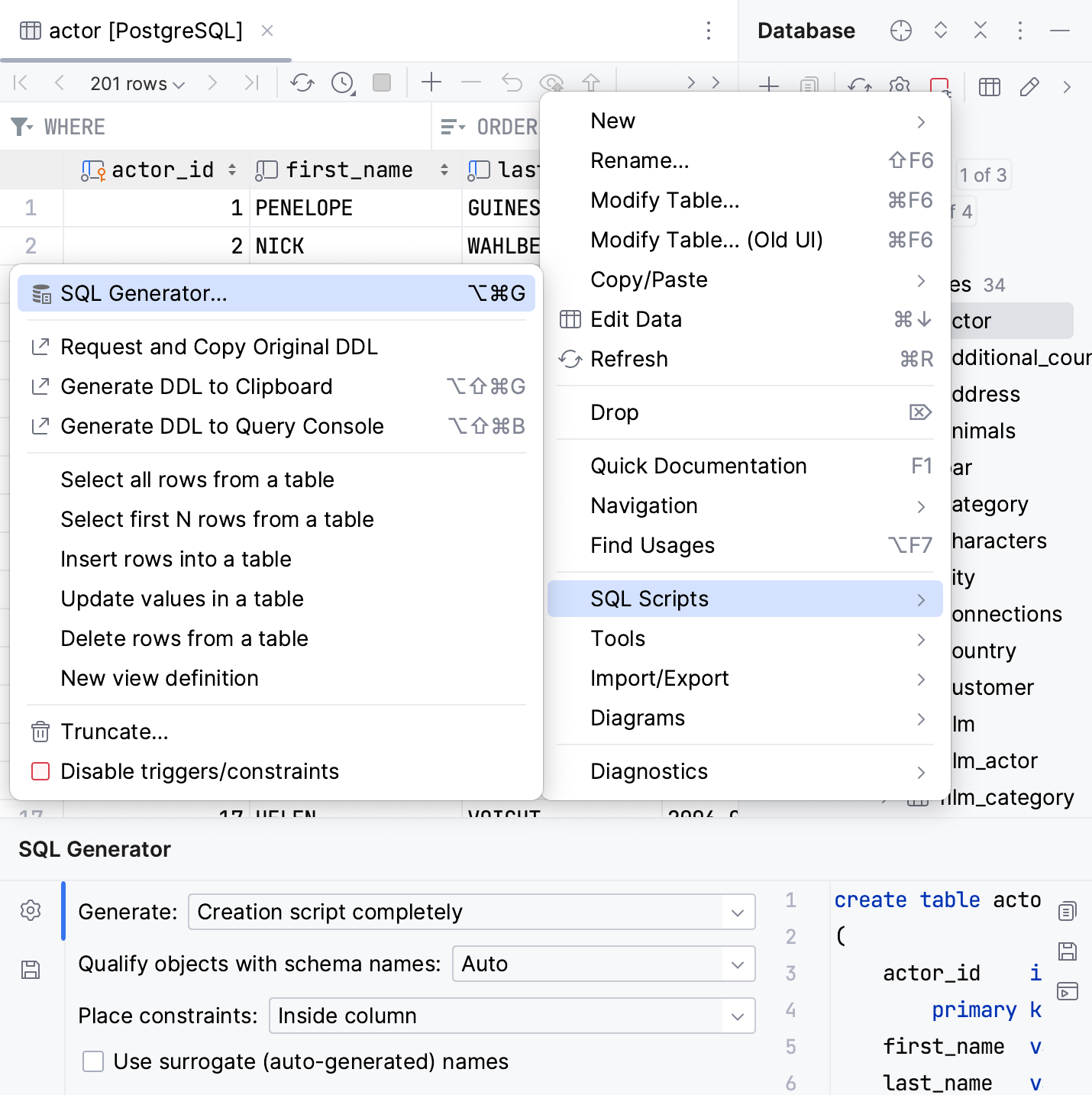 For more information about the SQL Generator… controls, refer to Generate DDL definitions for database objects.
