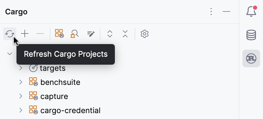 Alternatively, you can reload your project through the Cargo tool window () by clicking