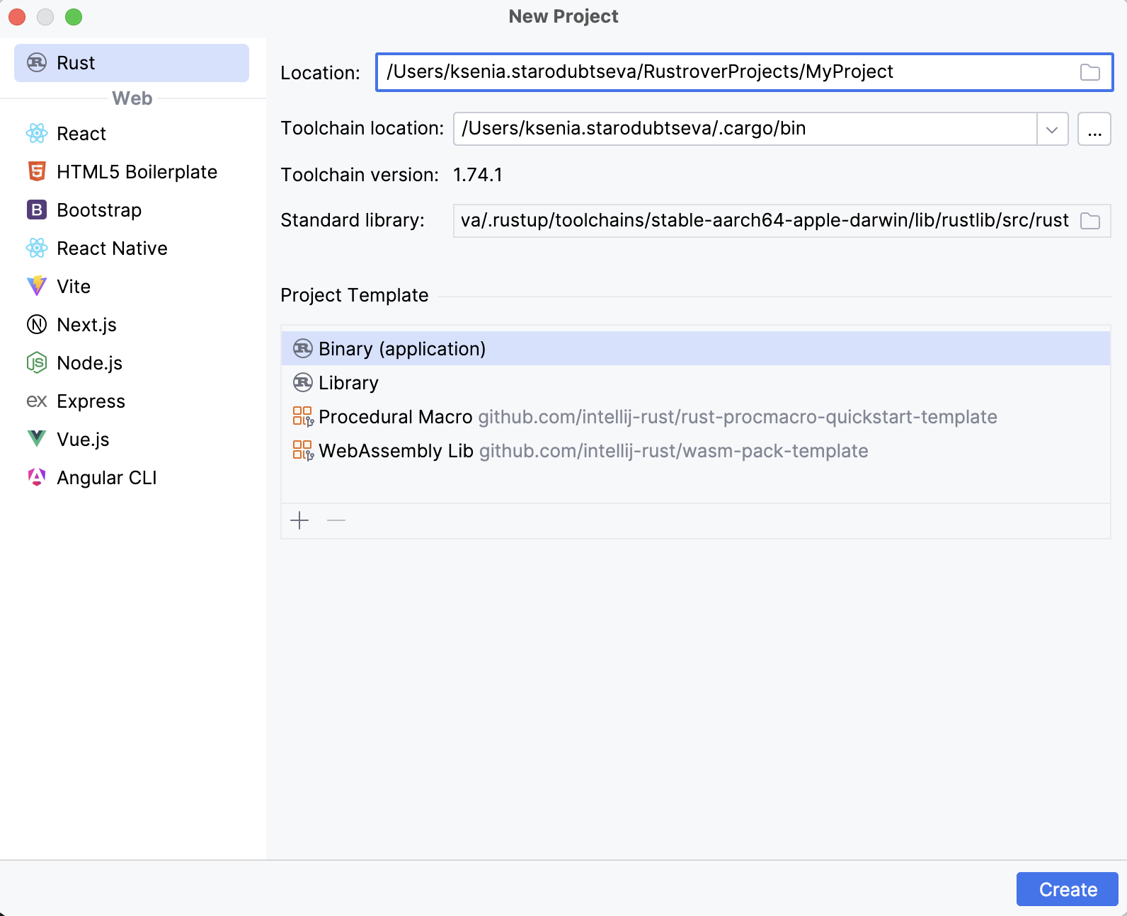 If the toolchain and standard library are installed, RustRover will detect them automatically. Otherwise, you will be suggested to download Rustup.