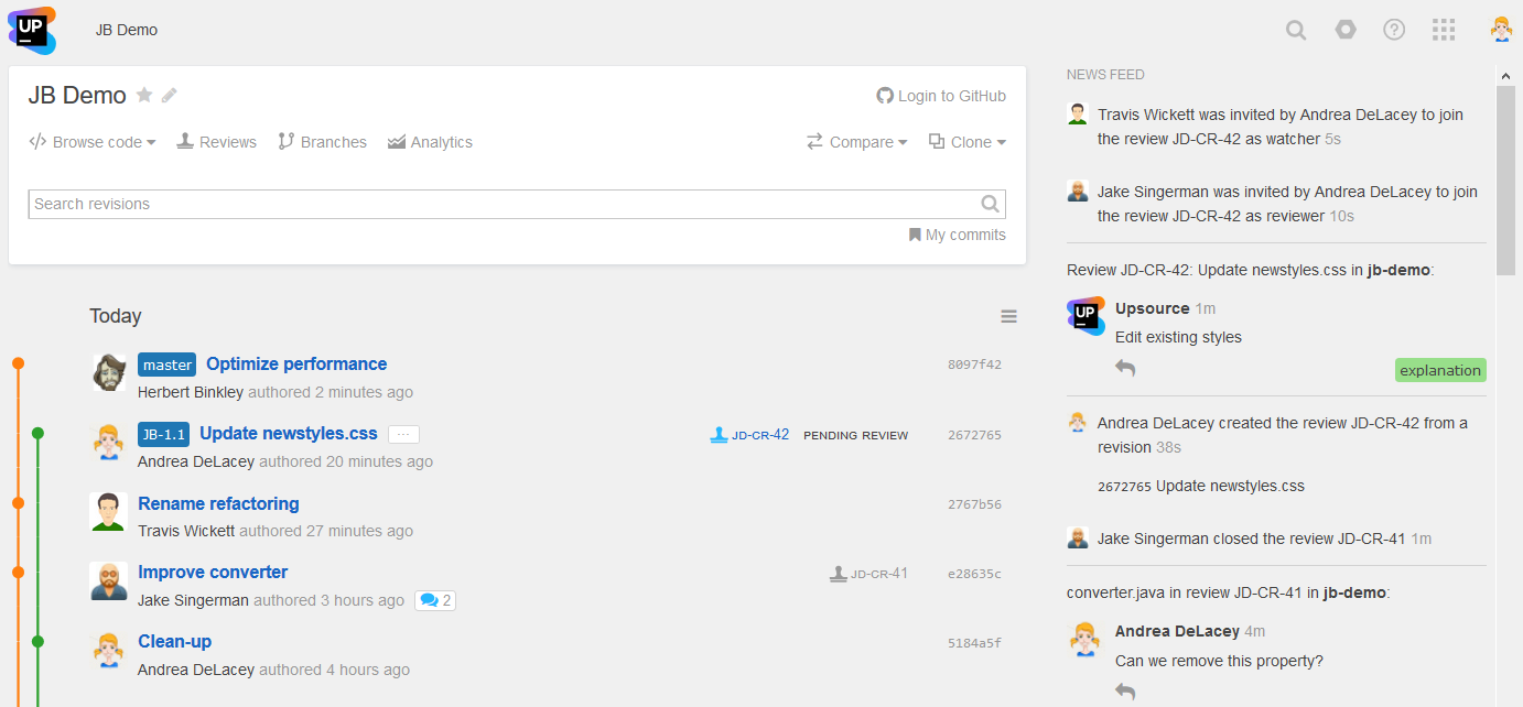 Upsource entry page displays configured projects, where each project corresponds to a specific VCS repository.