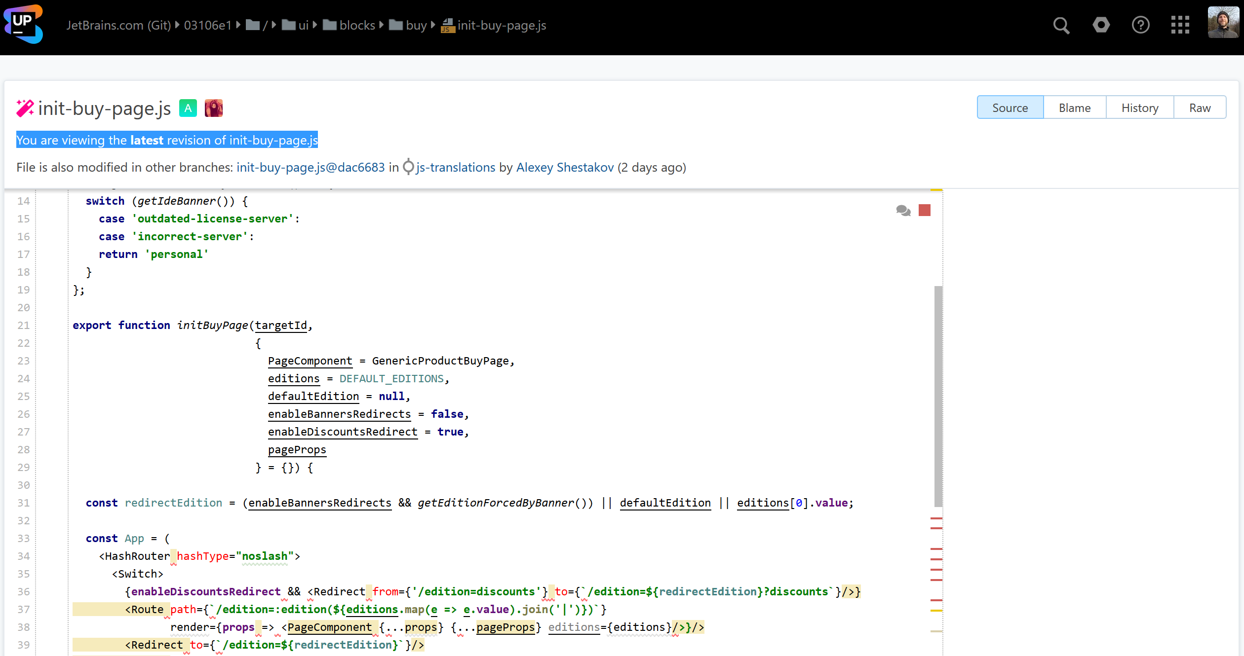 Upsource provides server-side code intelligence with its built-in static analysis engine. It supports Java, JavaScript, and Kotlin projects that use IntelliJ IDEA, Maven, or Gradle as their build system. PHP is also supported, but only with the IntelliJ IDEA build system.