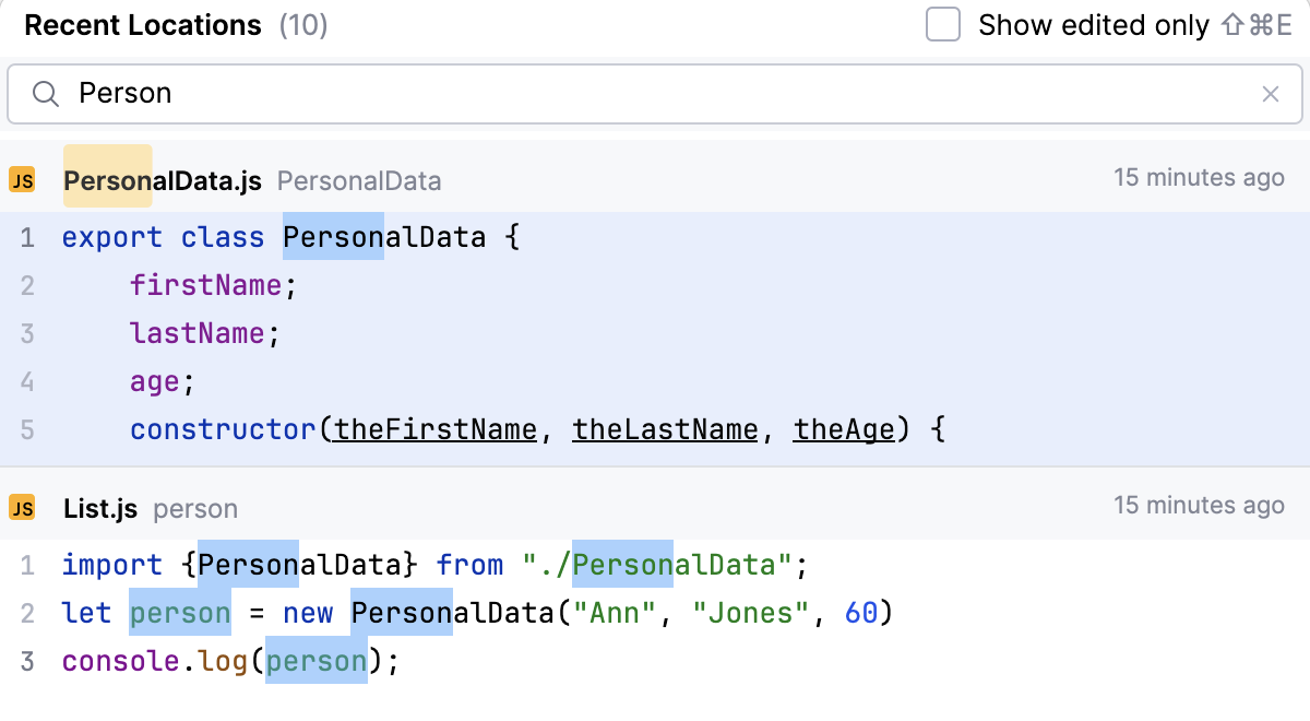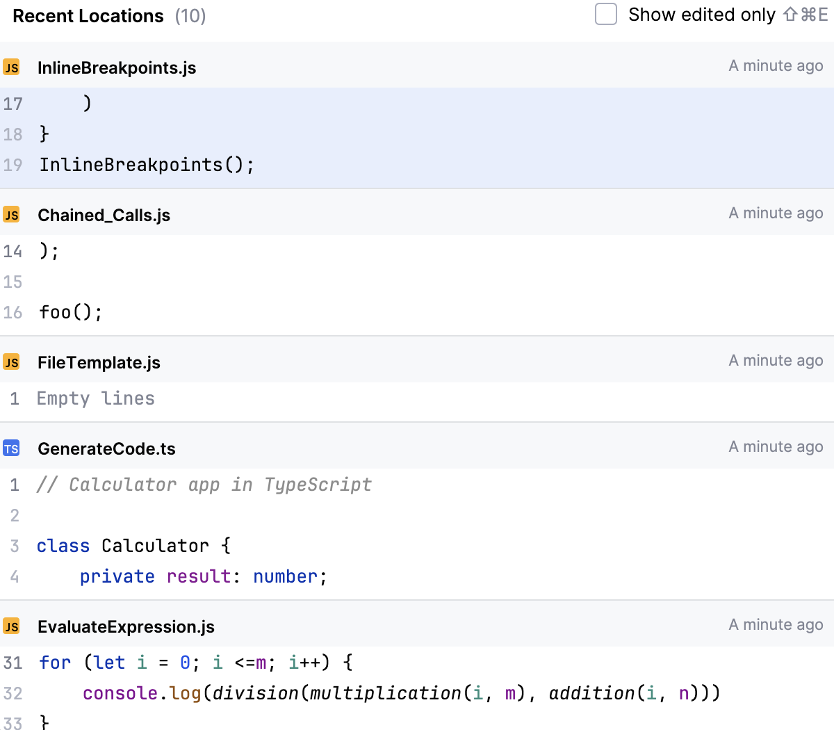 For the details on navigating recent files, locations, and changes, refer to Recent files and changes.