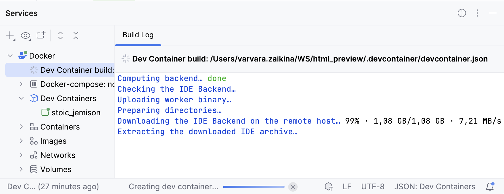 Manage Dev Container Backends | Use this option to remove the unnecessary ones from Docker shared volumes. ![]() |