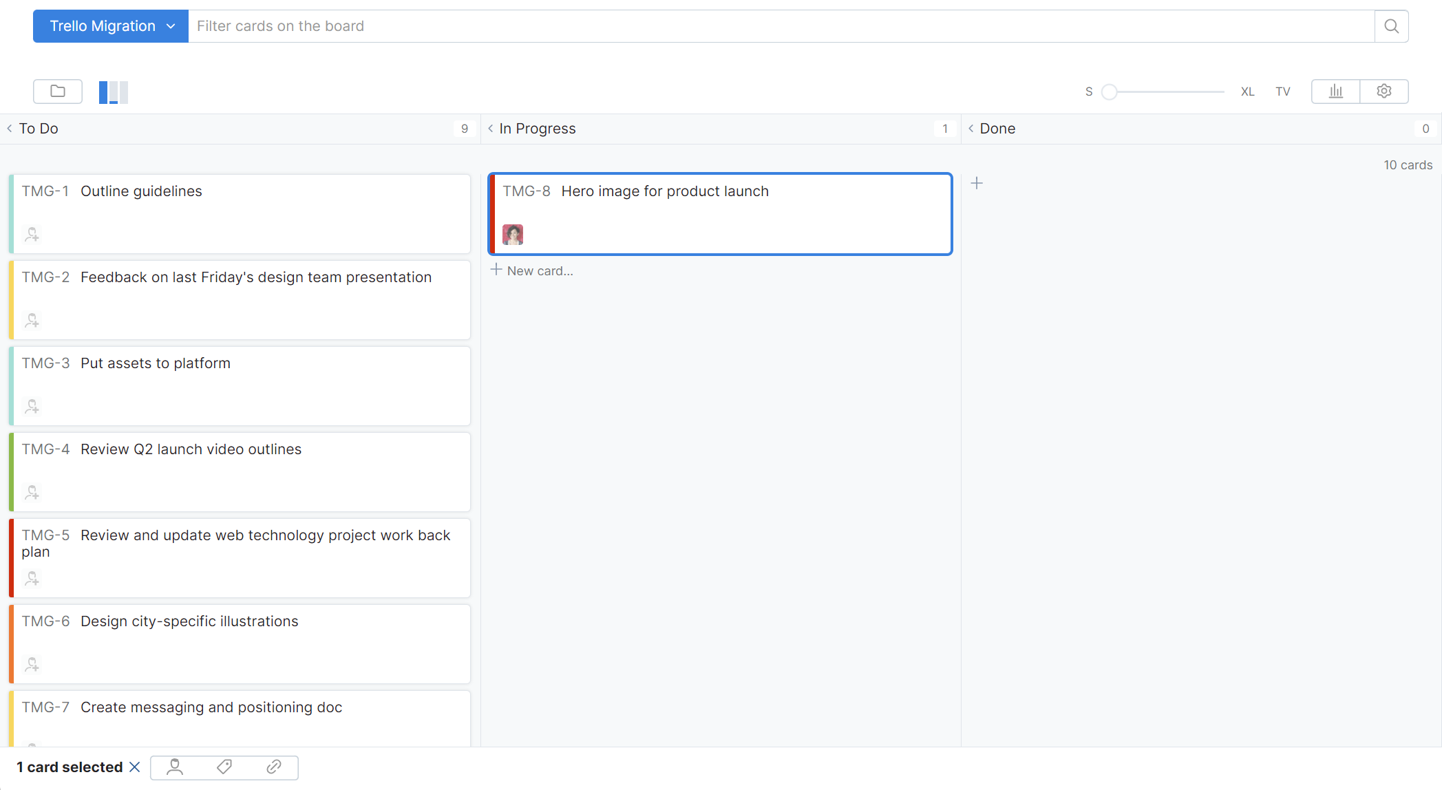 When you’ve completed the task, move the card from the In Progress column to Done.