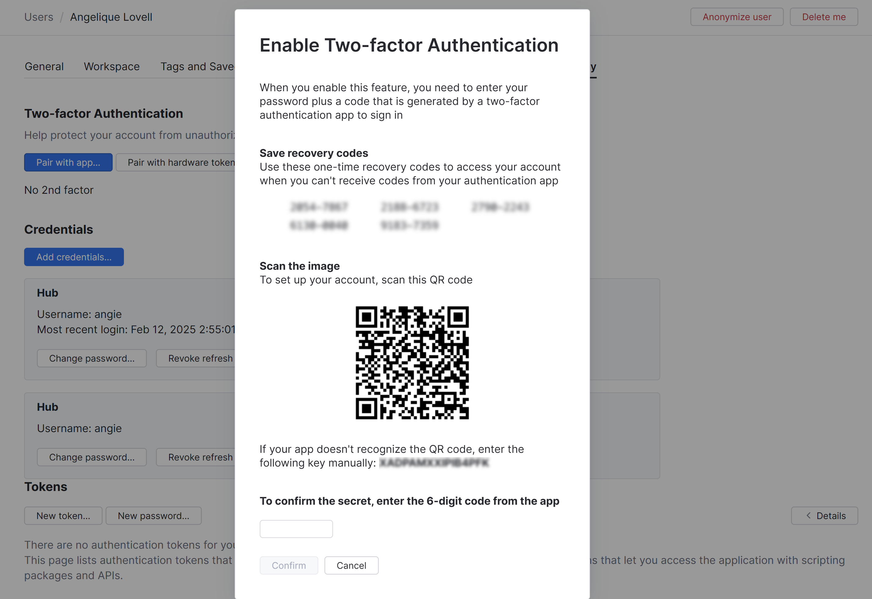 If you don't have access to or have used all of your recovery codes, contact an administrator. A user with the Update User permission can access your profile and disable two-factor authentication for you. You can then log in with just your username and password. You can re-enable the feature and pair the account with a new device or restore the connection to your old one.