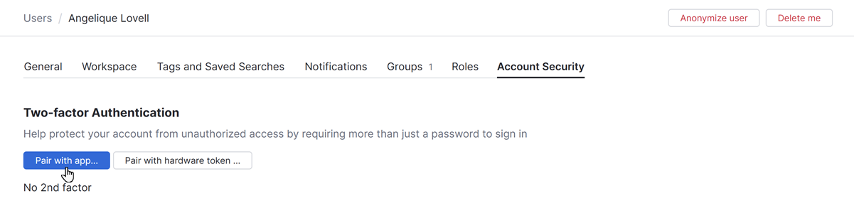 To learn how to disable 2FA for another user, see Disable Two-factor Authentication.
