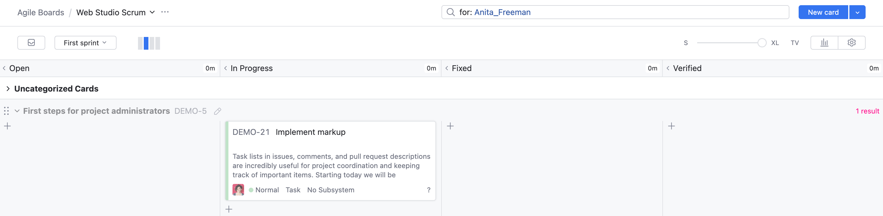 Sometimes you want to manage your own tasks, or see a specific set of tasks on an agile board. In this case, you can create a personal board that is available only to you. Select any saved search as a backlog, create your own sprints, and track your progress.