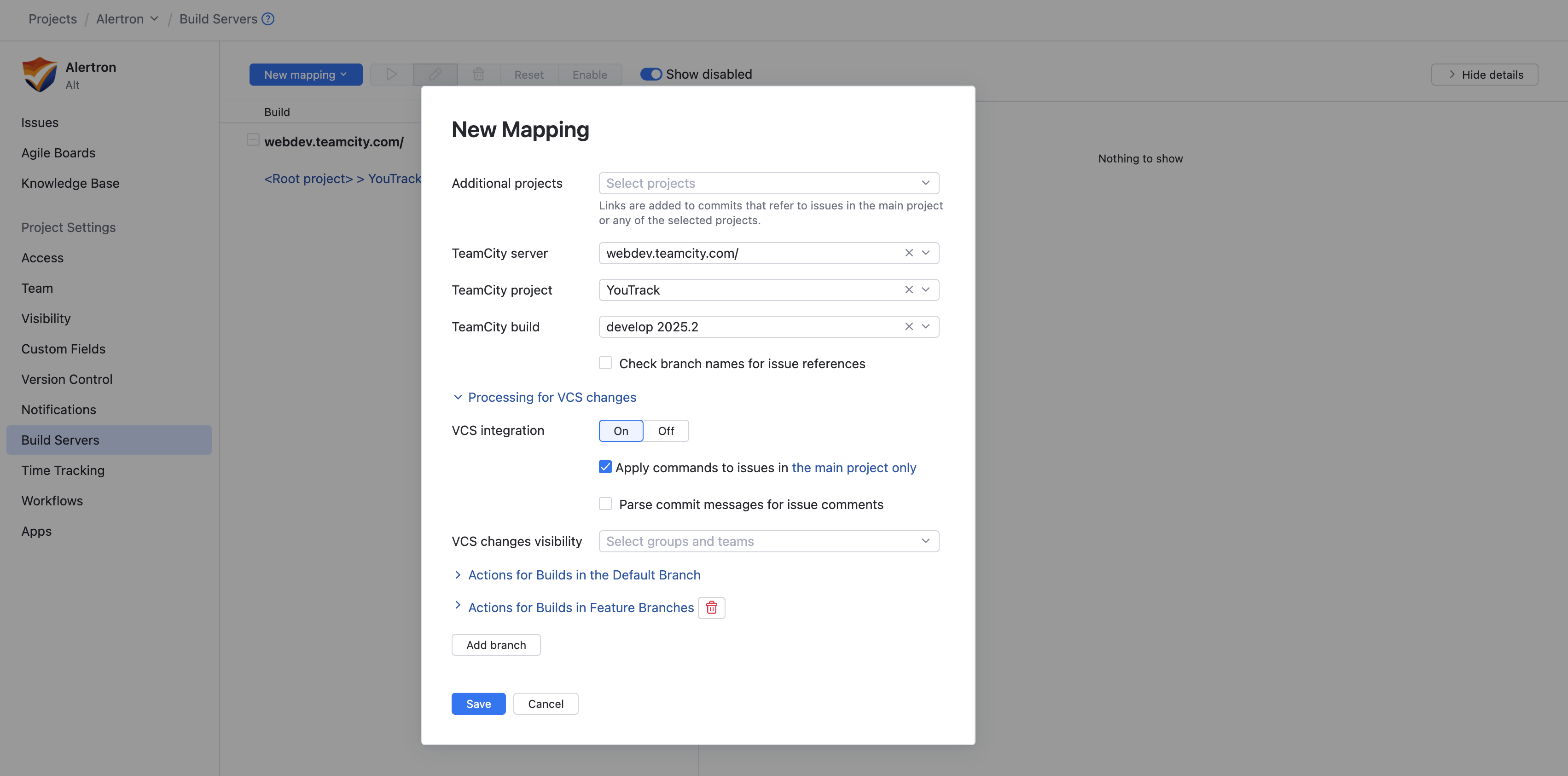 If YouTrack is already integrated with the TeamCity server that processes builds that contain references to your project, skip this step and define the mapping for your project.