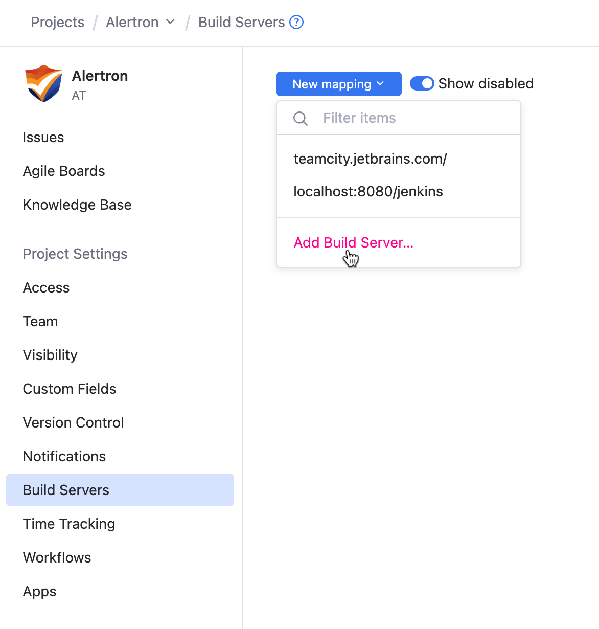 Click the New mapping button and select Add Build Server...