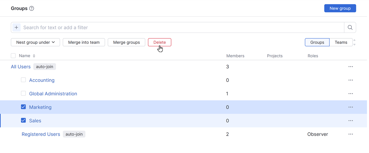 When you encounter groups in YouTrack that are no longer used or were created for a project that is no longer active, you can delete them from the system.