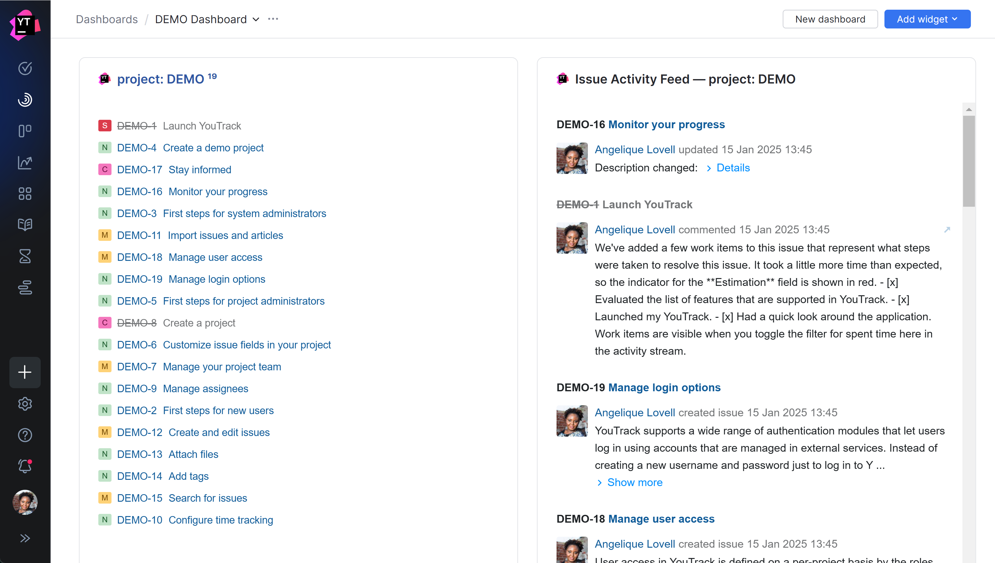 If you're evaluating YouTrack as a potential solution for managing projects in your organization, use the demo project to get first-hand experience with a range of features with minimal downtime for setup and configuration.