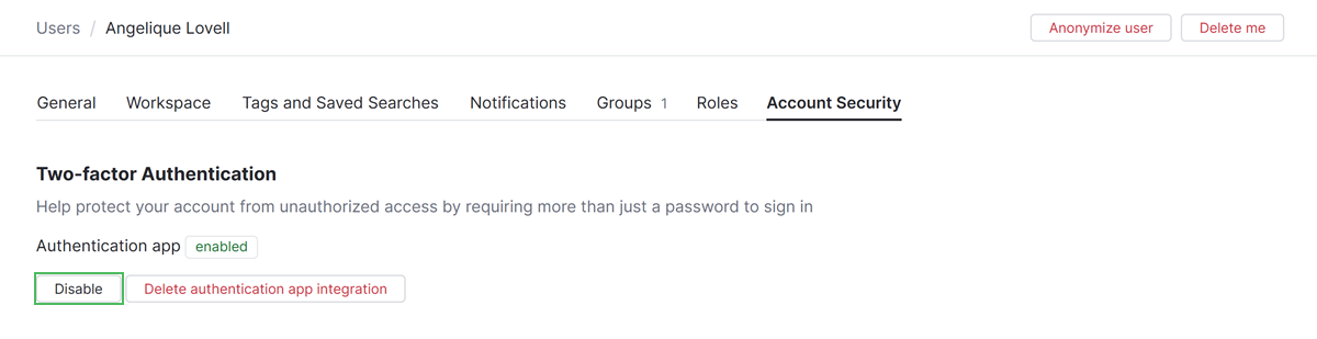 Users can enable two-factor authentication by pairing their Hub account with an authentication app. YouTrack provides recovery codes that can be used as one-time passwords to access the application. If a user doesn't have the recovery codes and no longer has access to the authentication app that is paired with the Hub account, he or she is unable to log in.