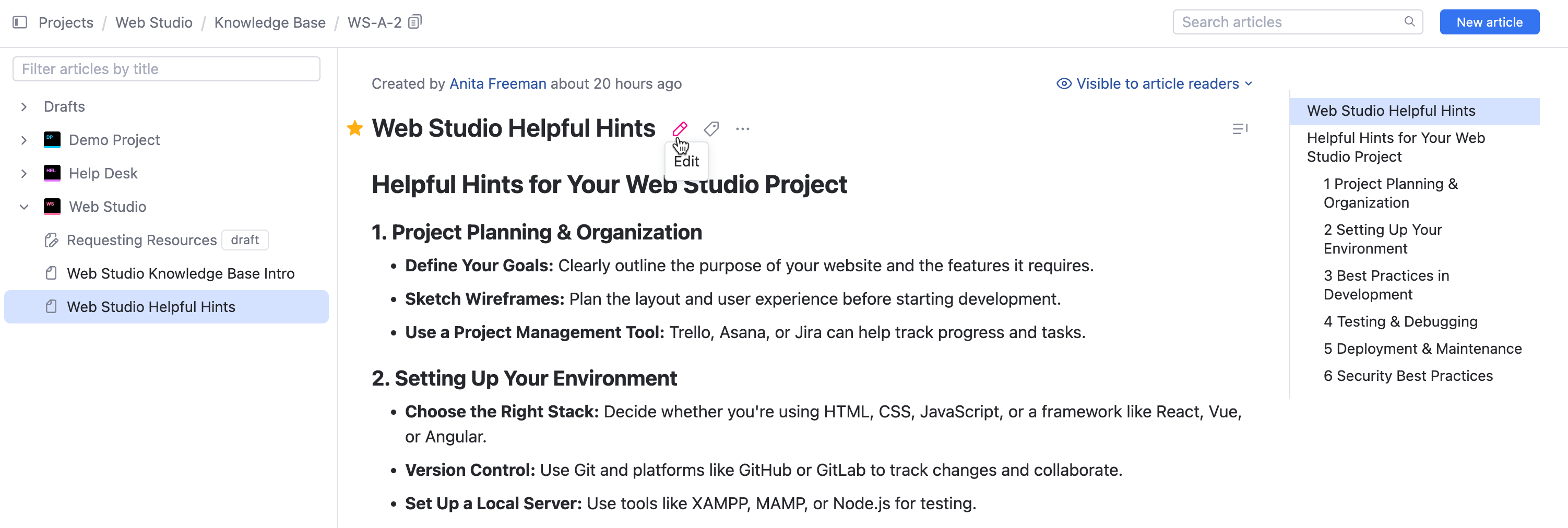 No matter which style you follow, YouTrack lets you make an unlimited number of edits to your article content and publish only when you think the time is right.