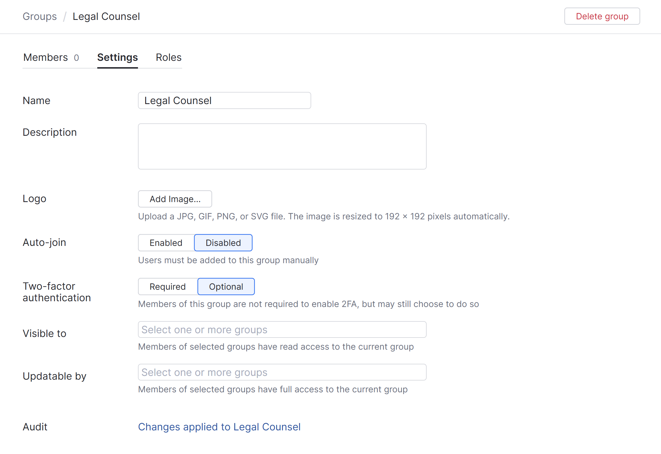 Logo | Stores an image used as the logo for the group. This helps distinguish between different groups in the Groups list. It is also used to decorate avatars in user selection menus. This includes the selectors for issue and comment visibility, suggestions in @mentions and commands, watchers, and assignees. Add icons to groups to help you quickly distinguish between different sets of users. |