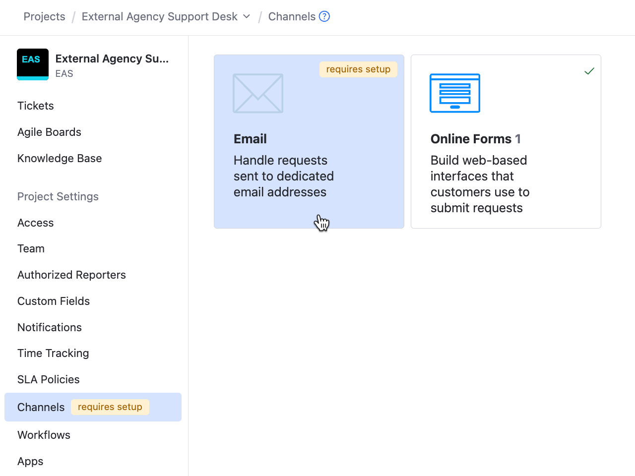 Click the name of the helpdesk project you want to configure.