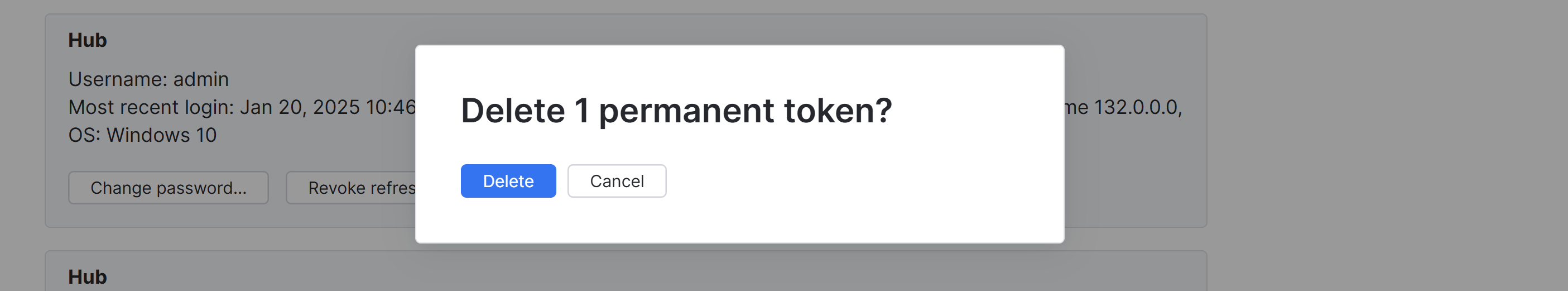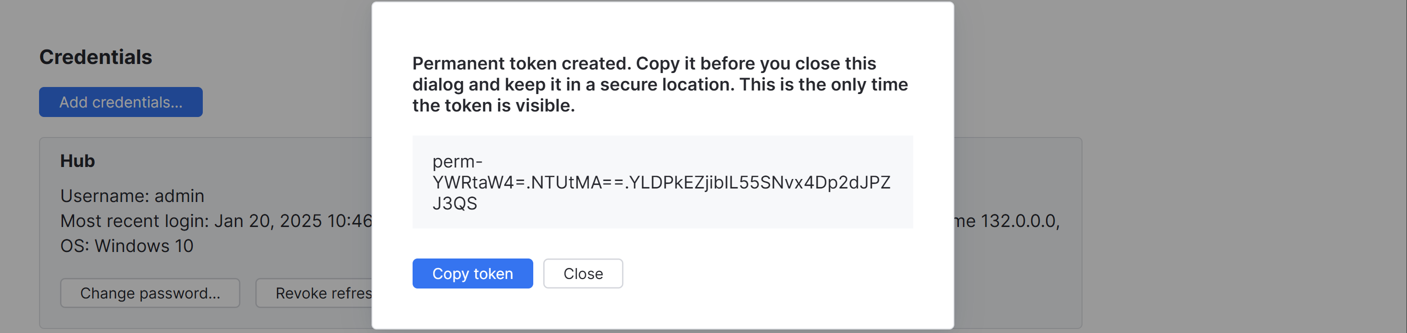 This page covers operations with permanent tokens that are performed in the user profile. For a sample of REST API calls using the permanent token, refer to the Permanent Token Authorization.