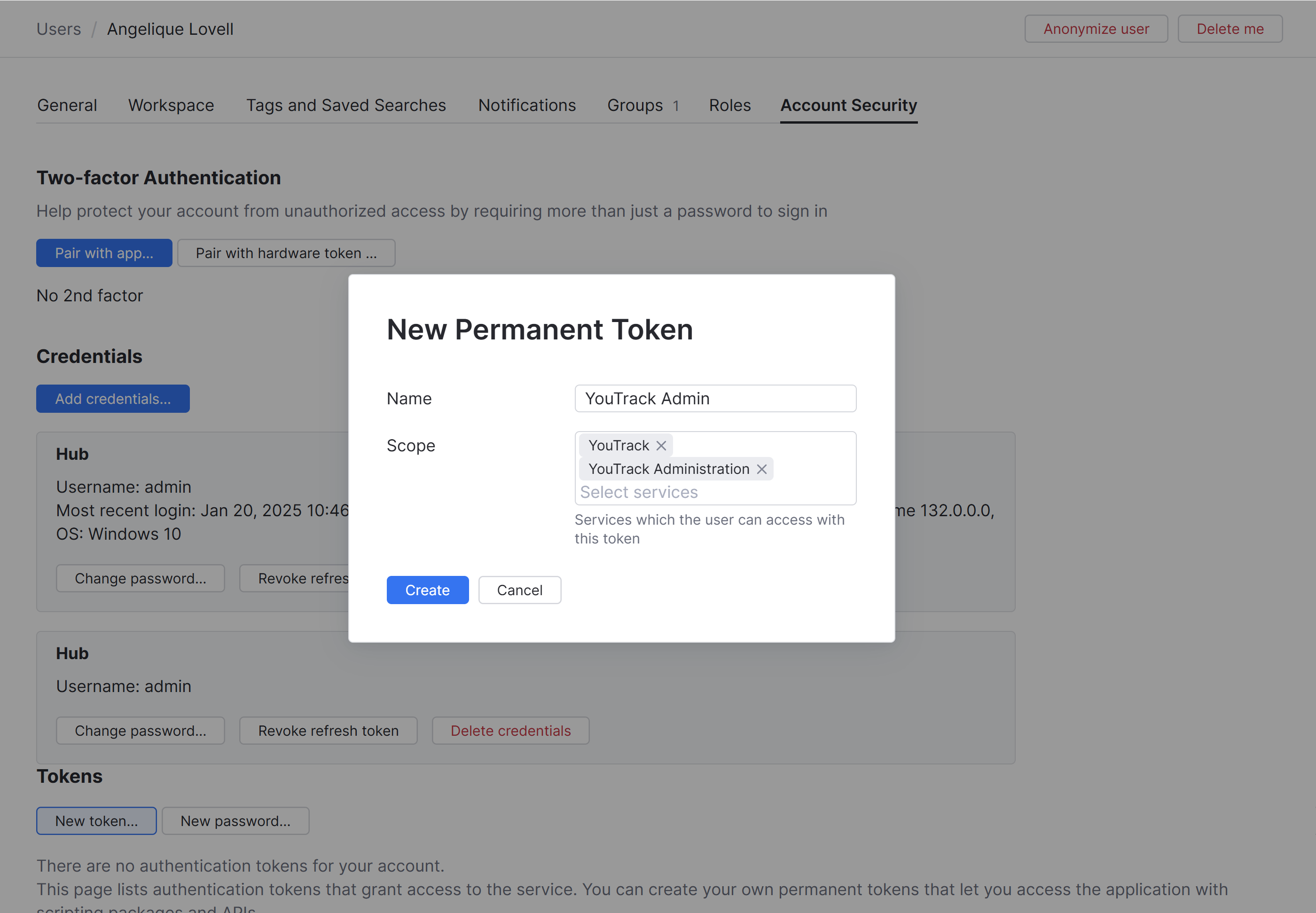 In YouTrack Cloud, permanent tokens let developers access and perform operations securely using the REST API calls in their scripts and applications without having to implement OAuth 2.0 authentication flows. A permanent token allows access to a service with the permissions that are granted to the user account.