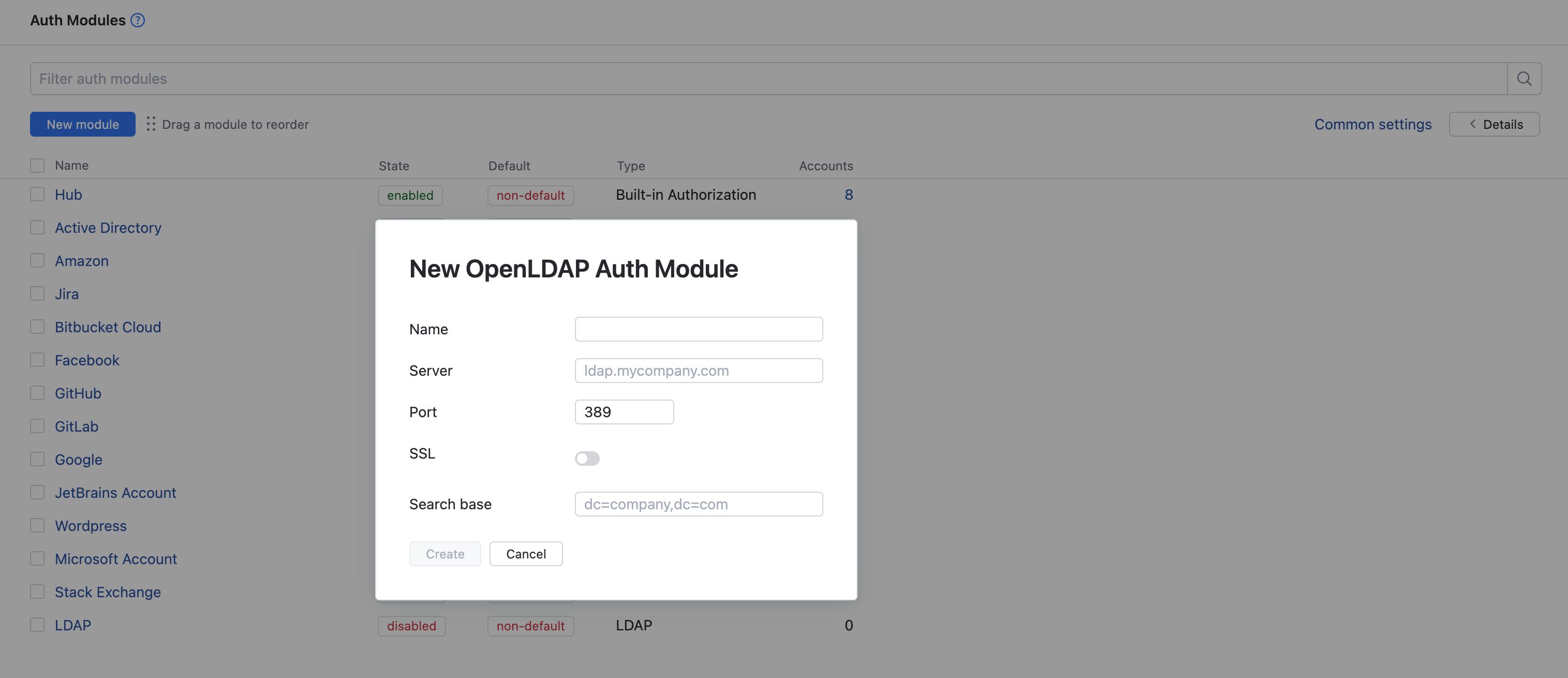 An LDAP authentication module lets users log in to YouTrack with credentials that are stored in a directory service. This authentication module is pre-configured for OpenLDAP. You can configure a module to use the standard LDAP scheme or LDAPS over SSL.