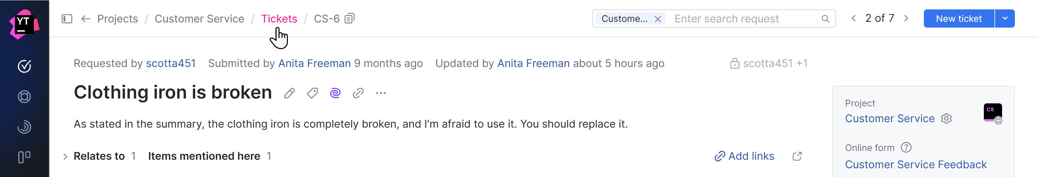 If you're working with a helpdesk project, you can experience something similar by clicking the Tickets link in the header of a helpdesk ticket.