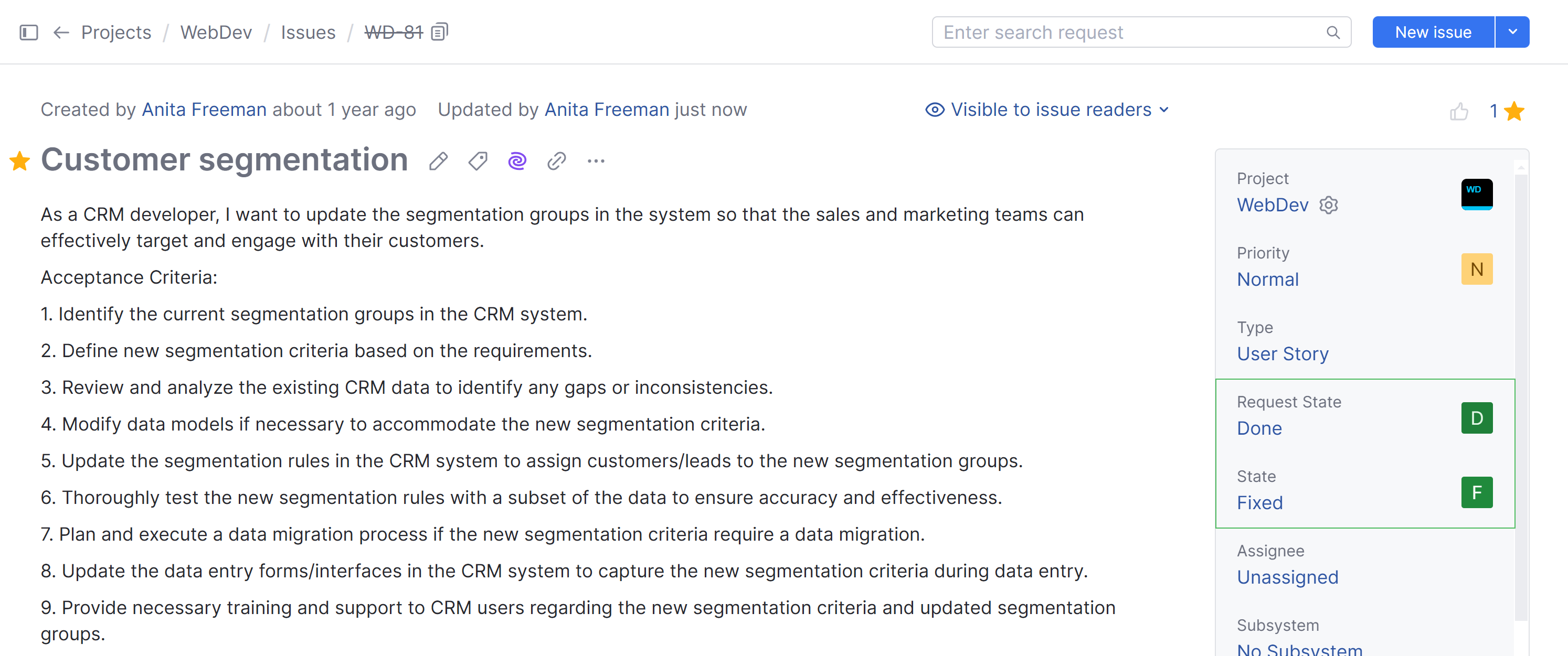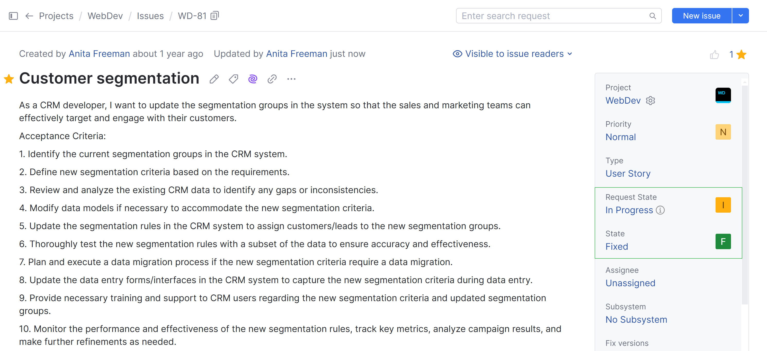 At the same time, there isn't a single property that lets you mark an issue as archived. All the issues that belong to active projects, whether they are resolved or not, are available in the system.