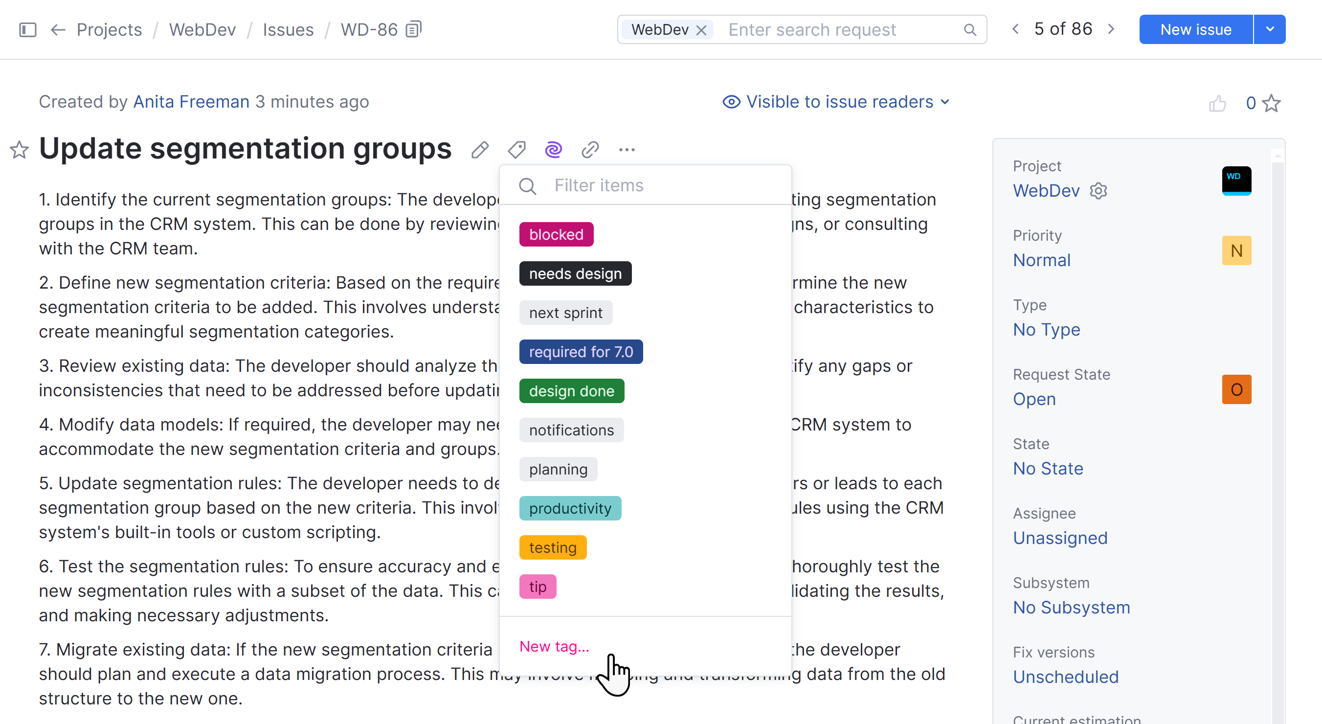 Before you can start working with tags, you need to create them. You can create and use personal tags to categorize issues according to your own tastes or create shared tags to support internal workflows.