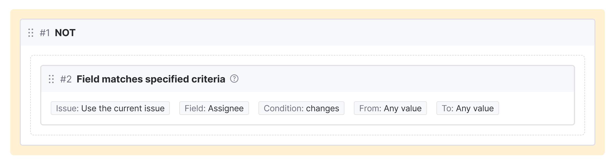 For example, this block stops a workflow from running if value for the Assignee field is changed.