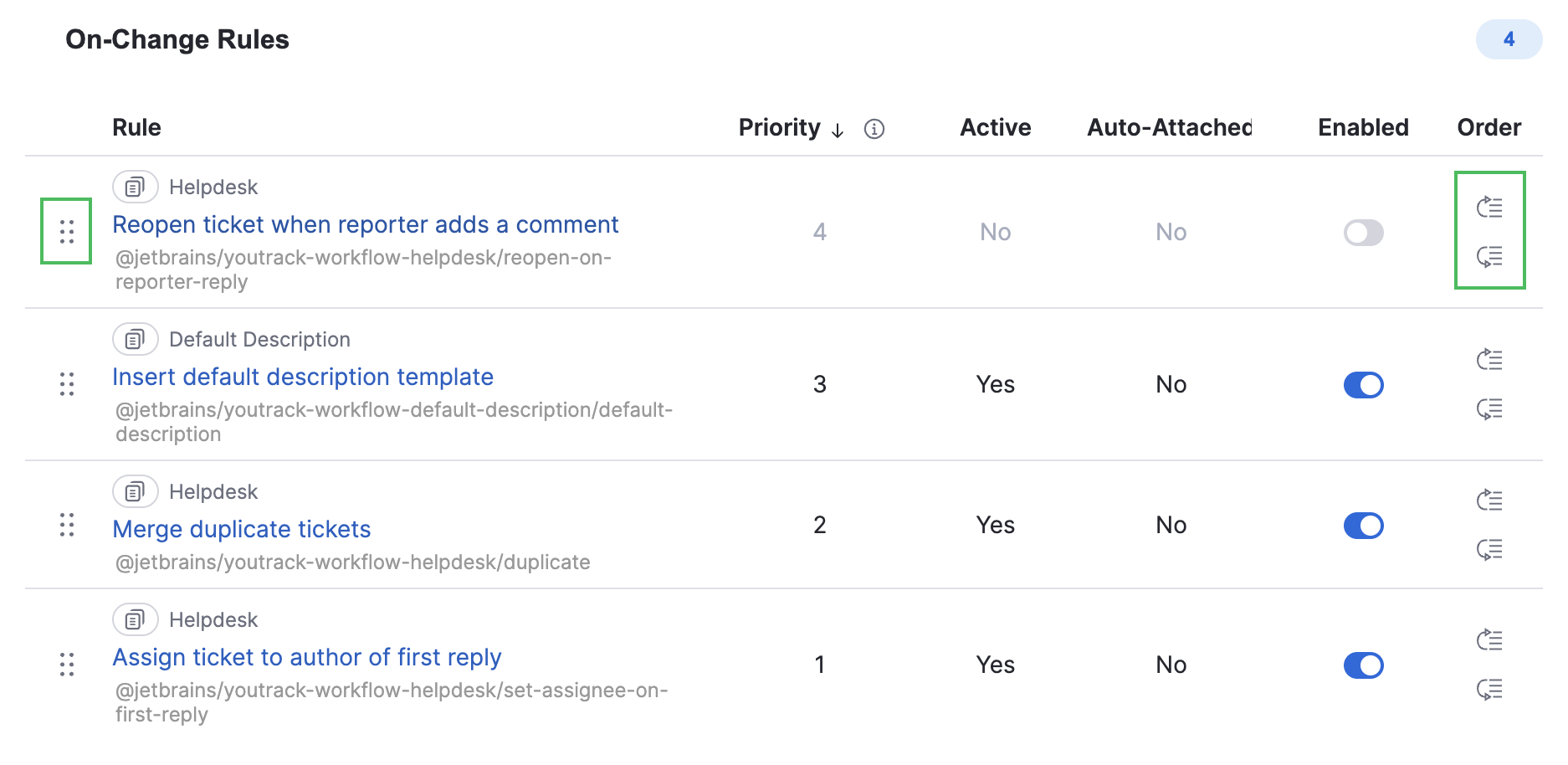 Drag rules to change their position in the list or use the buttons on the right to move a rule to the top or bottom of the queue.