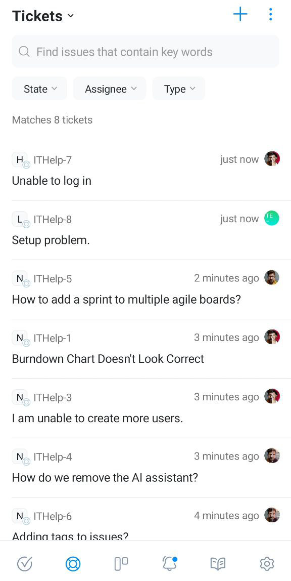 Once you are logged in, YouTrack Mobile opens the Issues list.
