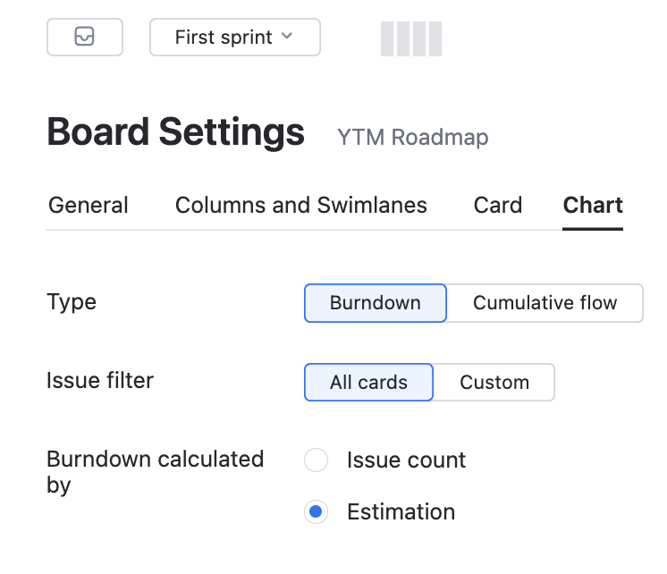 (Optional) On the Chart tab, set the Burndown calculated by option to Estimation.
