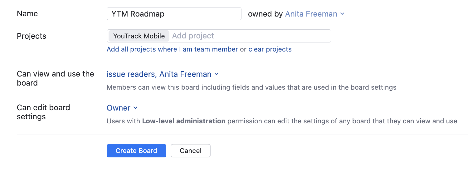 Follow the instructions in the previous procedure through step 5 to create a new board for the development team.