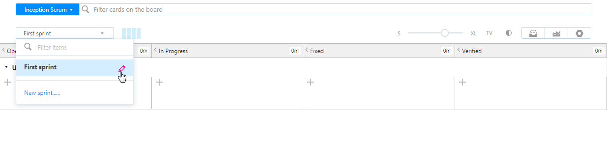 When you create your Scrum board, an unscheduled sprint is created by default. To schedule your first sprint, open the Sprints drop-down list and edit the sprint.