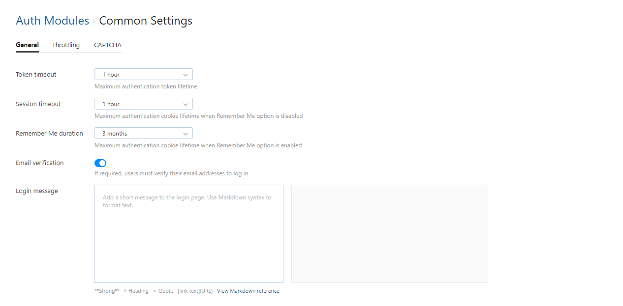 When the Throttling option is enabled, there are additional settings that manage how throttling is applied to logins and requests to verify credentials.