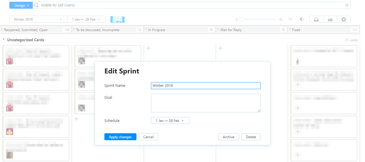 Our Design team produces graphics and artwork for multiple products and projects. Their issues track design requests for JetBrains websites, product icons, logos, print materials, advertising campaigns, t-shirts, and more. They have a continuous flow of incoming tasks, coming from every product team.