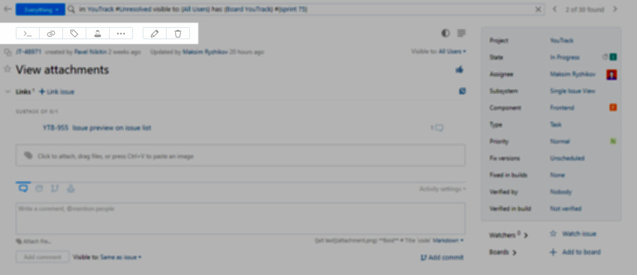 The single issue view includes a toolbar that lets you apply specific actions to the current issue.