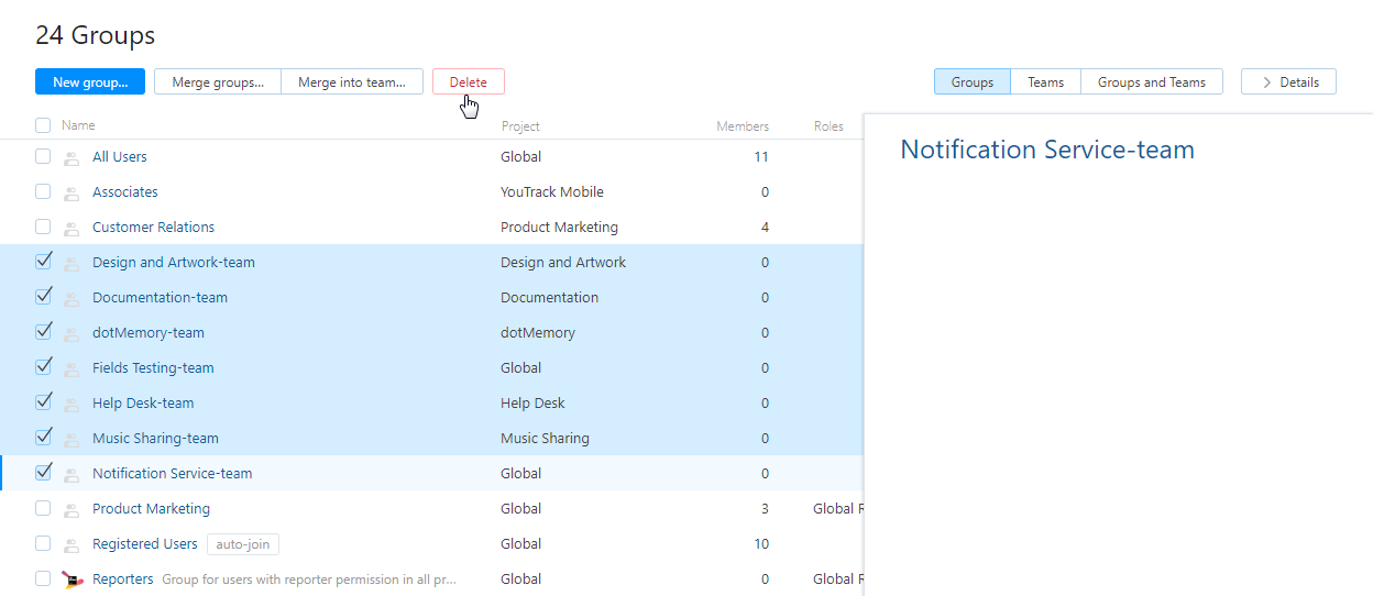 When you encounter groups in YouTrack that are no longer used or were created for a project that is no longer active, you can delete them from the system.