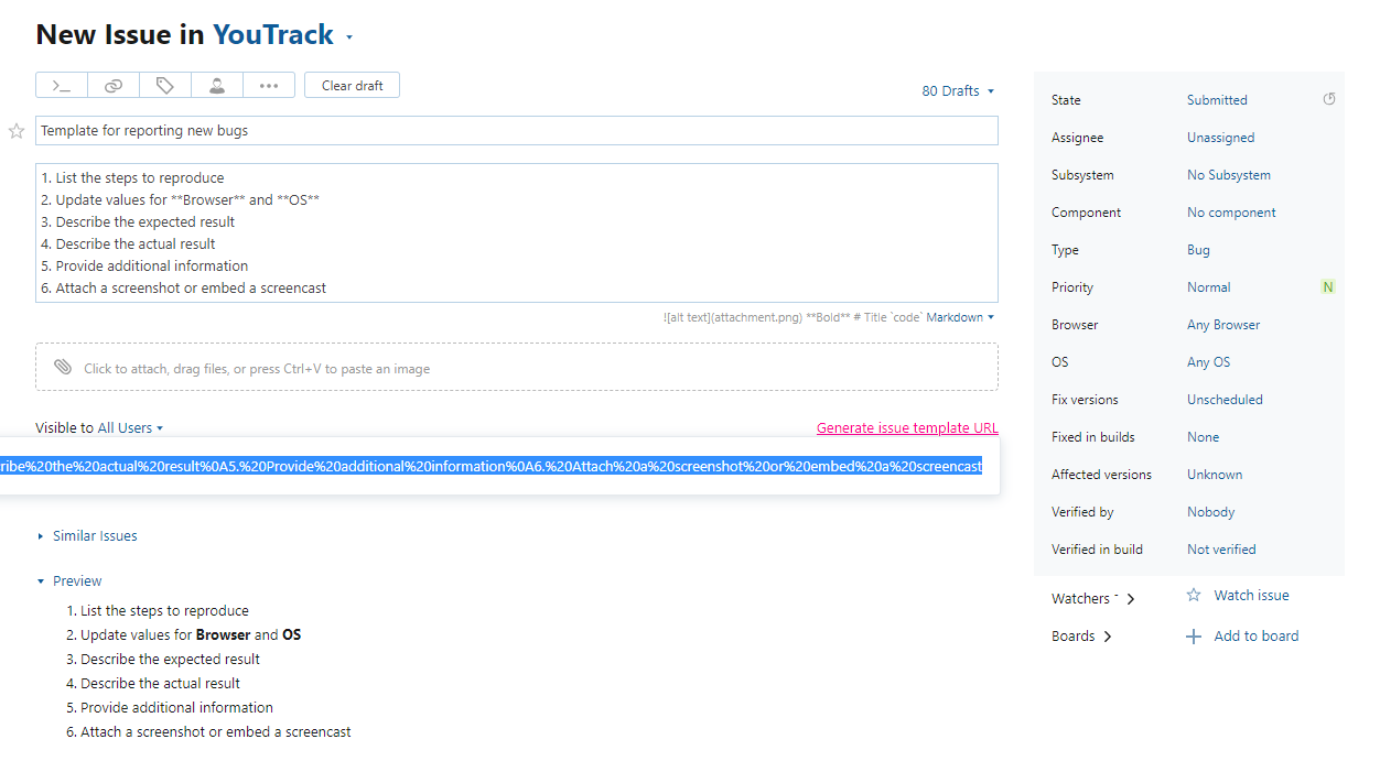 Once you have generated the issue template URL, just copy it and share it as you see fit.