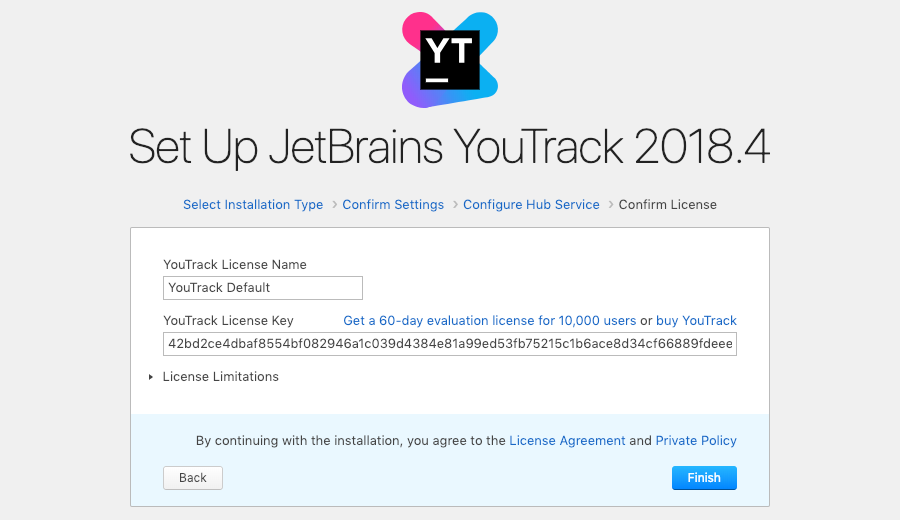That's it. Your YouTrack Standalone instance is installed and ready for use.