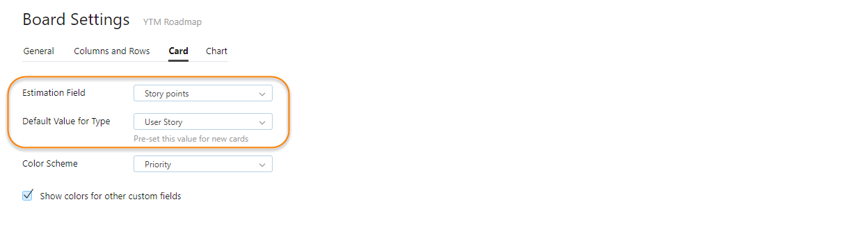 If you manage multiple projects on the board, you can set the Color Scheme to Project and assign different colors to cards for each project.