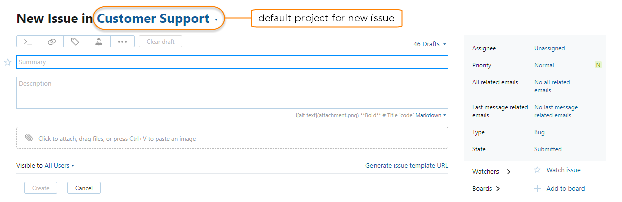 When you set the search context to a project, your search queries are restricted to issues in the selected project. As long as you are using a project for the search context, this project is set as the default value for the Project field in new issues.