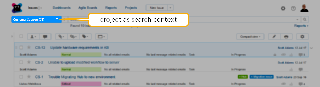 If you want to limit the results of a search query to a specific set of issues, use a search context.