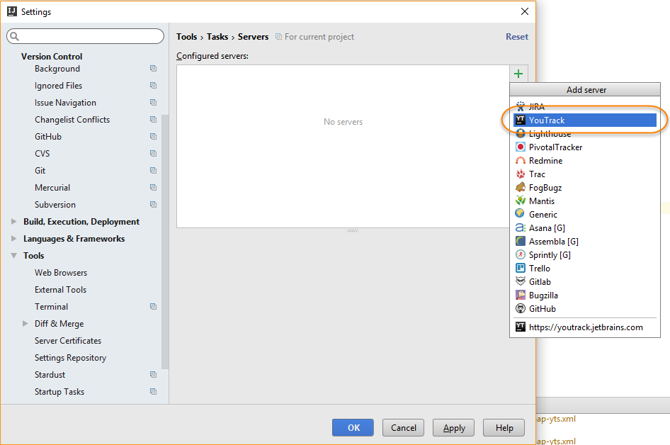 JetBrains IDEs support native integration with YouTrack with the Task Management plugin. This plugin is installed and enabled by default in IntelliJ IDEA, PhpStorm, PyCharm, RubyMine, WebStorm, AppCode, CLion, Rider, and MPS.